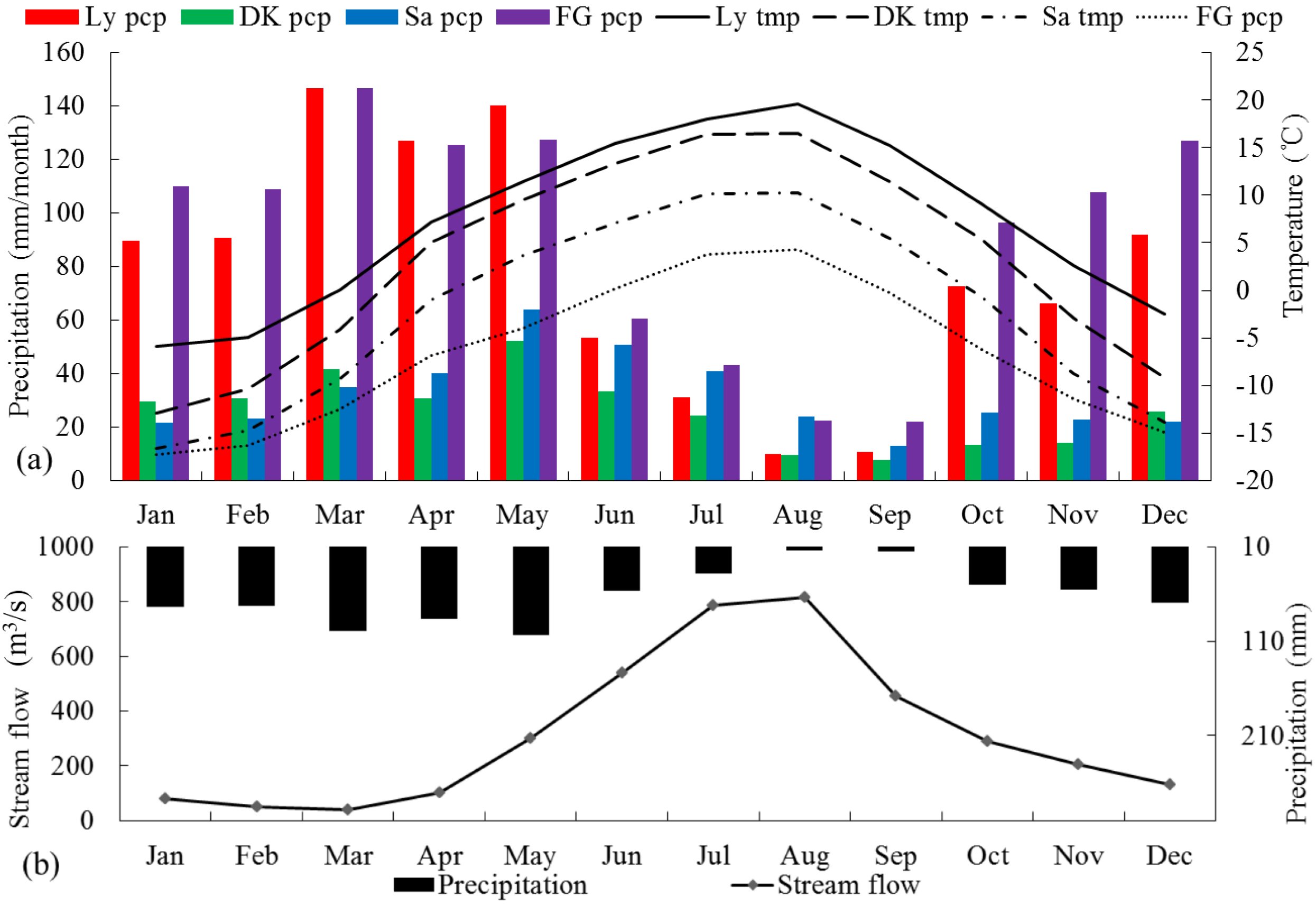- Lauri, H.; Räsänen, T.A.; Kummu, M. Using reanalysis and remotely sensed temperature and precipitation data for hydrological modeling in monsoon climate: Mekong river case study. J. Hydrometeorol. 2014, 15, 1532–1545. [Google Scholar] [CrossRef]