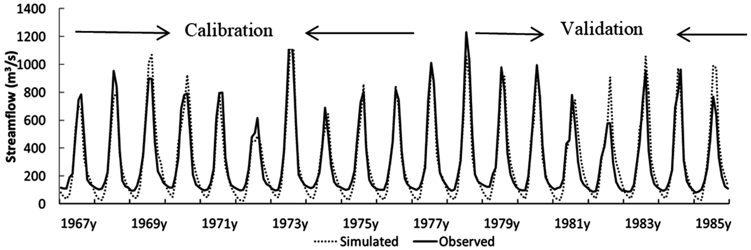 | ESCO.hru | Soil evaporation compensation factor (-) | 0–1 | 0.7–0.99 | 1.67 |