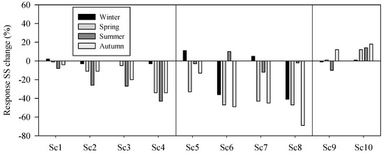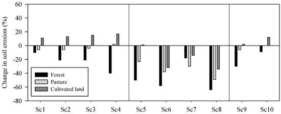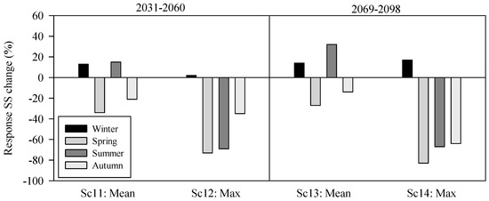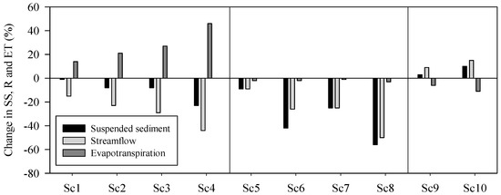 3.2. Effects of Simultaneous Changes in Climate Parameters in Suspended Sediment Yield