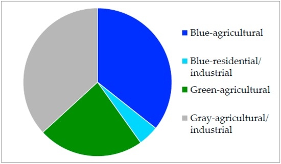 - Mekonnen, M.M.; Hoekstra, A.Y. National Water Footprint Accounts: The Green, Blue and Grey Water Footprint Production and Consumption; UNESCO-IHE Institute for Water Education: Delft, The Netherlands, 2011; Volume 2, p. 44. [Google Scholar]
