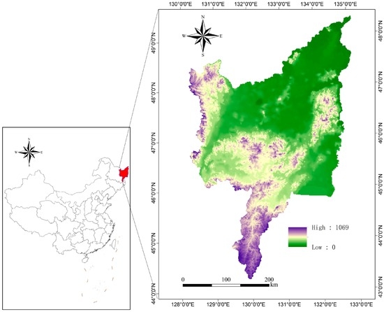 The Sanjiang Plain (43°49′55″–48°27′40″ N; 129°11′20″–135°05′26″ E) is a low elevation plain located in the Heilongjiang Province of the northeast of China (Figure 1). Its total area is about 108,900 km2 and it takes up 22.6% of Heilongjiang Province.