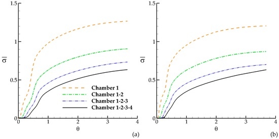 Time variations of dispersion indexes in each chamber are shown in Figure 8 for RANS and in Figure 9 for LES.