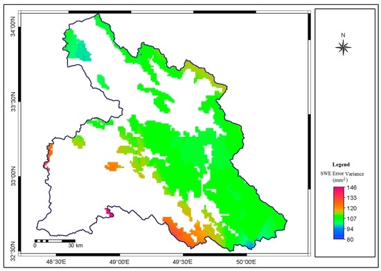 Further explanation about the error variance map is available in [19]. Error variance maps are used as the main reference in determining the new locations of a gauge or omitting redundant gauges. Therefore, snow measurement stations can be established where error variance is high. The reduction of spatial error variance corresponding to adding one station can also be determined.