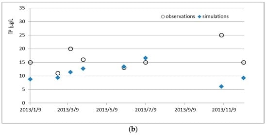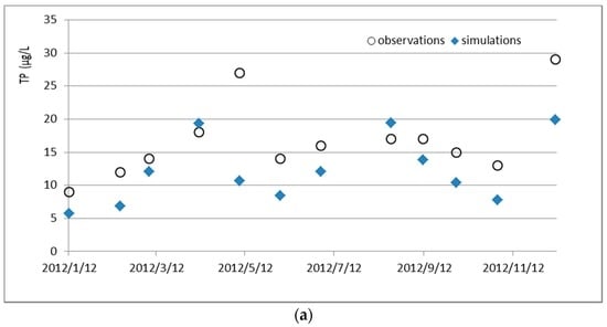 The TP simulation results. (a) The model calibration using the 2012 data, and (b) the model validation using the 2013 data.