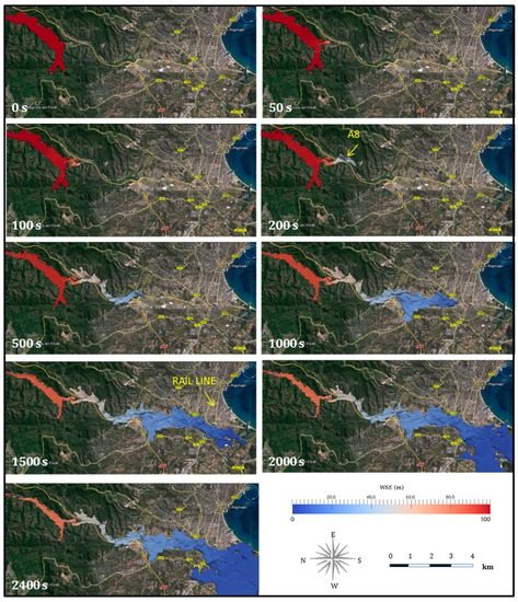 - Hervouet, J.-M.; Petitjean, A. Malpasset dam-break revisited with two-dimensional computations. J. Hydraul. Res. 1999, 37, 777–788. [Google Scholar] [CrossRef]