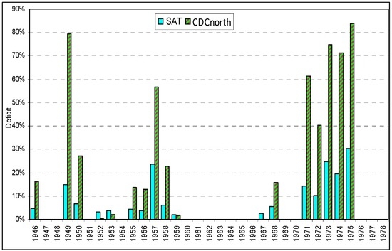 Deficit SAT (municipal) and CDC north (irrigation), in scenario n.1.