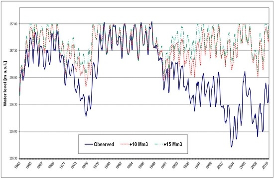 For the aim of this study, the simulations carried out took into consideration the same period with the hypothesis about the water release for Lake Trasimeno restoration, which ranged from 10 to 15 Mm3.