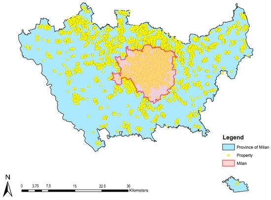 This study focuses on the province of Milan which is one of the most populous urban environments in Europe (about 3,181,152 inhabitants distributed over an area of 1578.9 km2) and the largest Italian real estate market (also as a result of urban development and revitalization linked to the world exposition event-EXPO 2015).