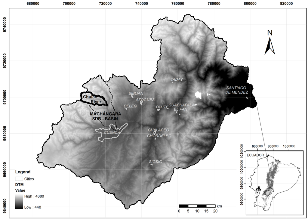 Location of the Chulco river basin in the Paute river basin.