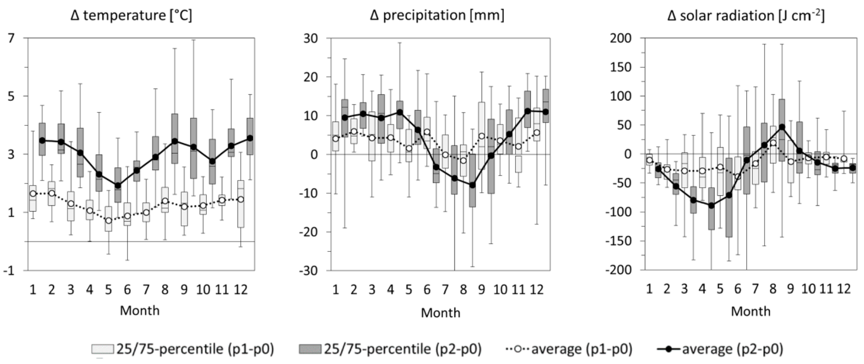 - Wechsung, F.; Wechsung, M. Dryer years and brighter sky—The predictable simulation outcomes for Germany’s warmer climate from the weather resampling model STARS. Int. J. Climatol. 2014. [Google Scholar] [CrossRef]