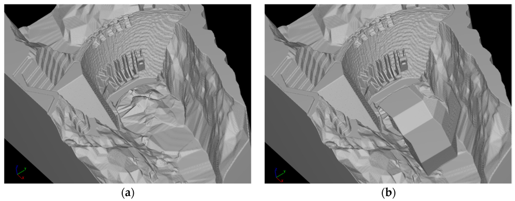 Pre-excavated basin. (a) Initial condition; (b) geometry proposed.