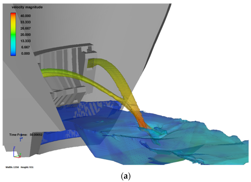 - Hirt, C.W.; Nichols, B.D. Volume of Fluid (VOF) Method for the Dynamics of Free Boundaries. J. Comput. Phys. 1981, 39, 201–225. [Google Scholar] [CrossRef]