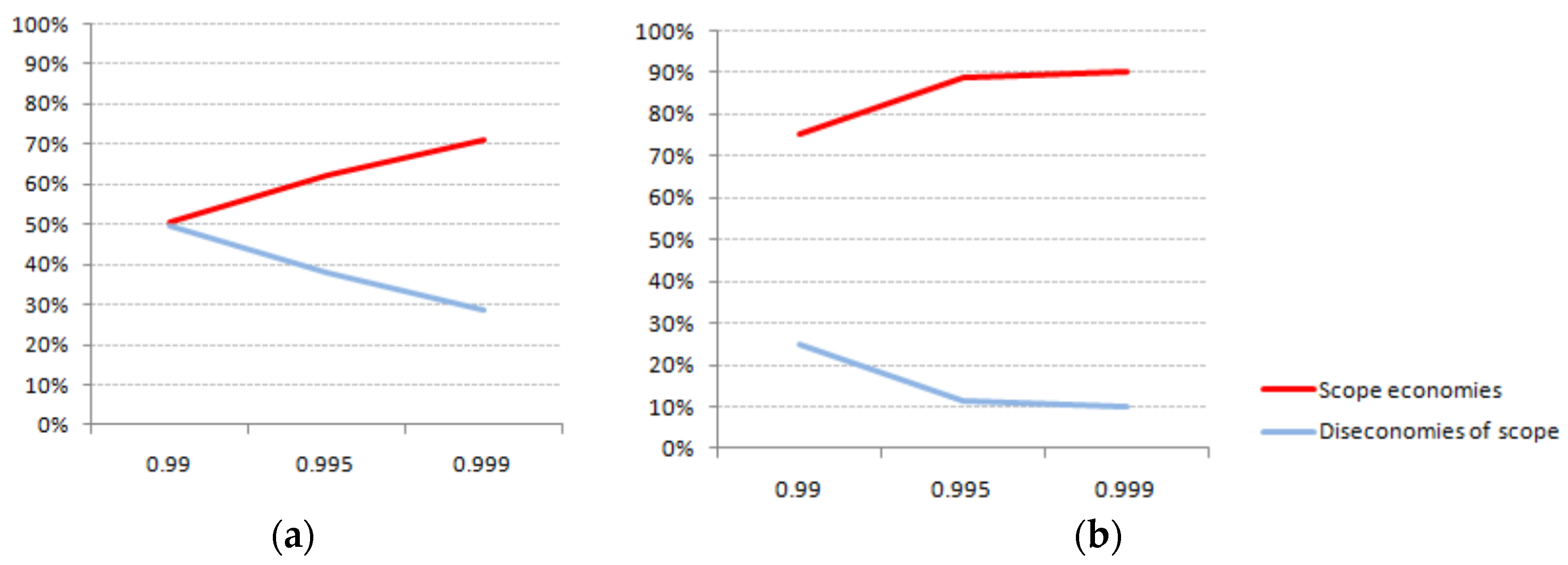 This ratio allows us to assess which frontier dominates the other and, consequently, to conclude about economies or diseconomies of scope.
