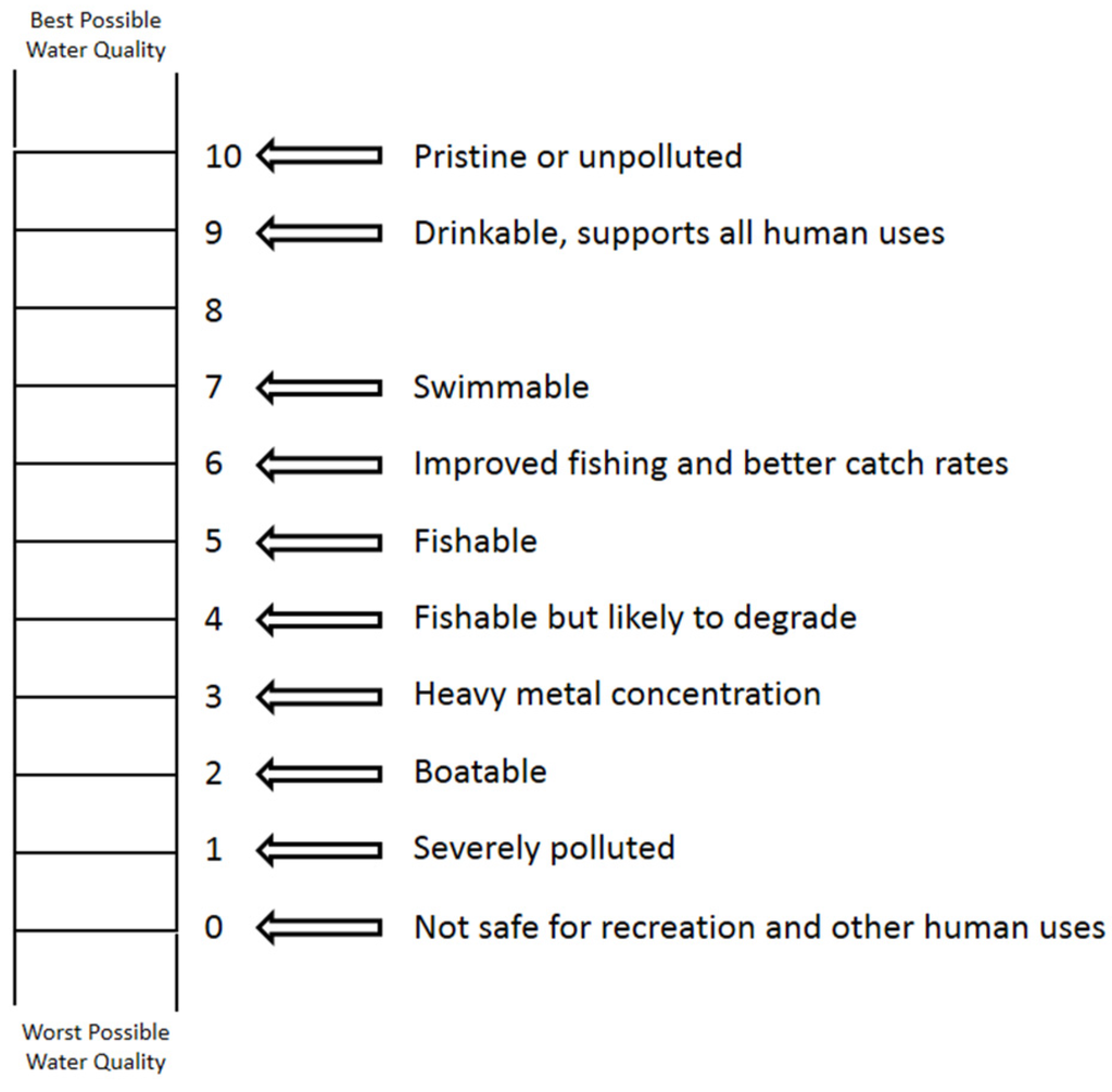 - Vaughan, W. The water quality ladder. In Using Surveys to Value Public Goods: The Contingent Valuation Method; Mitchell, R., Carson, R., Eds.; Resources for the Future: Washington, DC, USA, 1989; p. 342. [Google Scholar]
