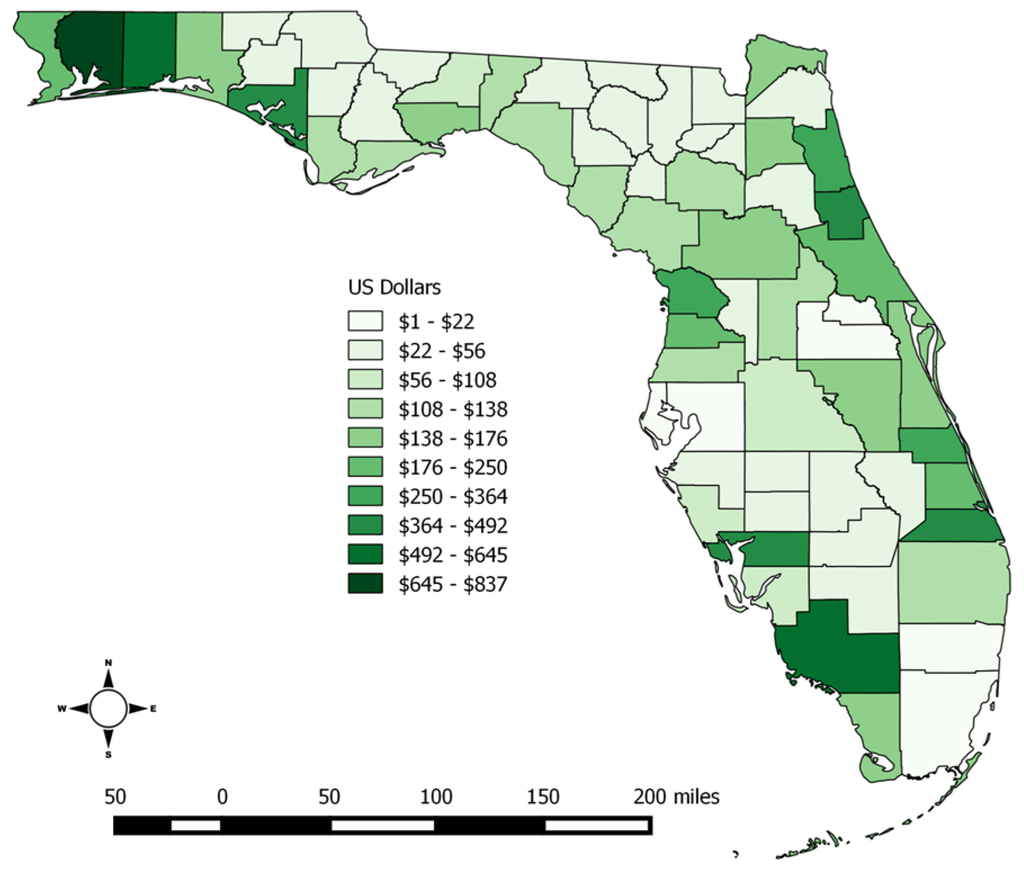 | Bhat [27] | 1996 | FL | 4 | Florida keys | Travel Cost | 295.09–424.47 |