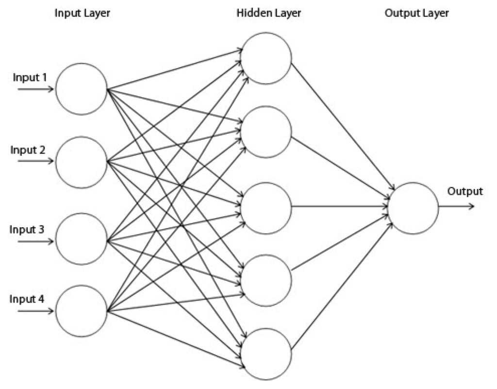 ANN schematization: Input i is the input set, output is the result of network delay, and each circle represents neural network []; each line indicates nodes between neurons that have their own connection strength.