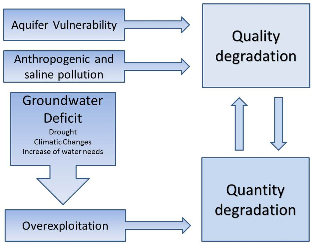 In focusing on high-quality groundwater resources, which are larger than superficial water resources but less renewable, the main risks of degradation can be categorized into two types (Figure 1).