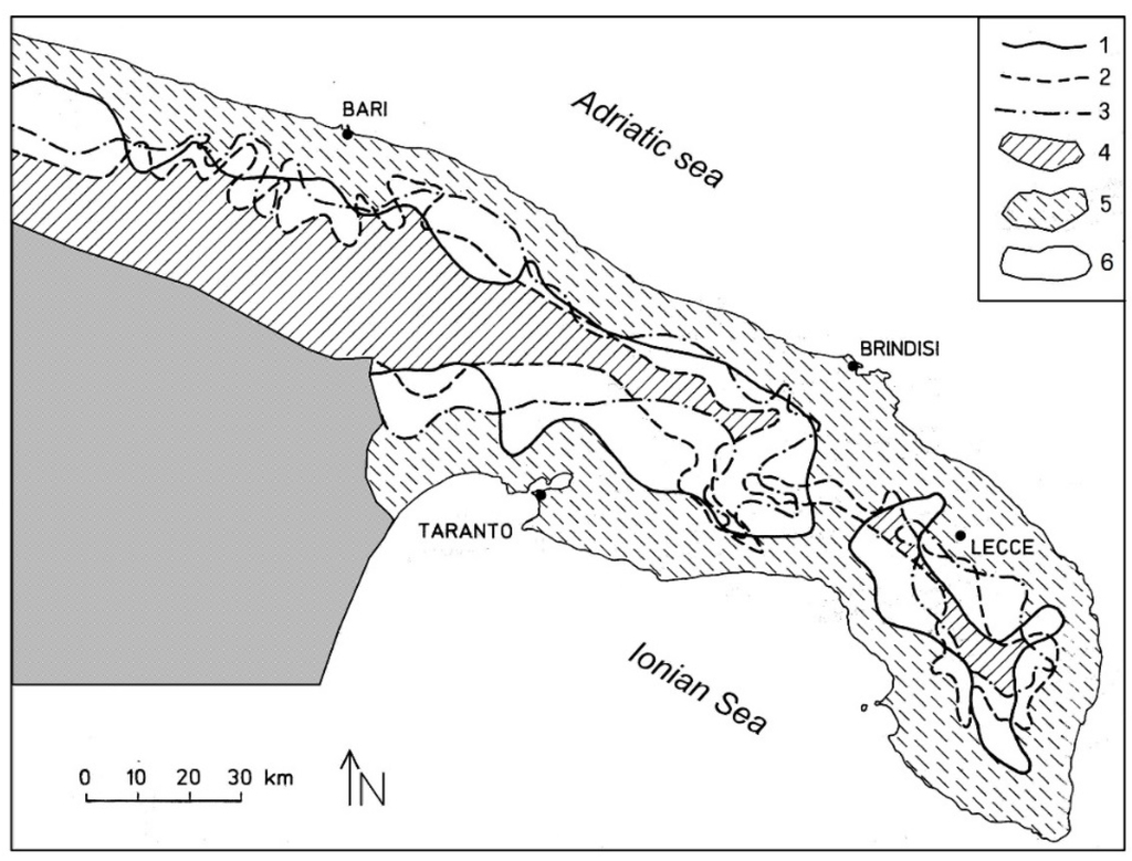 19. Maggiore, M.; Pagliarulo, P. Circolazione idrica ed equilibri idrogeologici negli acquiferi della Puglia. Geol. Territ. 2004, 1, 13–35. [Google Scholar]