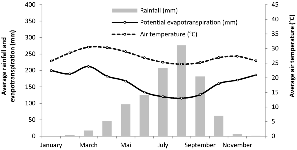 To better characterize the response of the groundwater level, we analyzed the cross-correlation between rainfall and water level in order to estimate the time lag (months) and the magnitude of the correlation. The time lag provides information on the system transfer speed while the magnitude of the correlation indicates the degree of preservation of the rainfall impulse during the transfer [