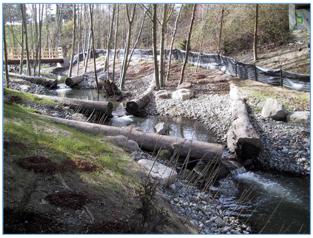 Example of a habitat-reconstruction project to address the perceived absence of large woody material and pools as key limiting factors in an urban stream (Longfellow Creek, Seattle, WA, USA). Other factors, however (largely water chemistry and flow), have precluded any meaningful biological success here [6] (photo by D. Booth).