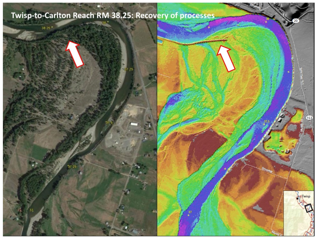 Evaluating the Twisp to Carlton reach from the perspective of watershed processes has highlighted the value of restoring three key watershed processes that presently experience significant, widespread impairment here. Their enhancement is likely to have multiple benefits for species of concern here and elsewhere, given the types of habitat limitations that have previously been identified: