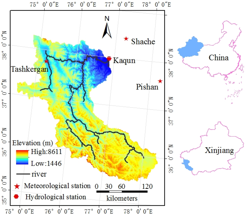 The location, topography, gauging stations and river network of Yarkant River basin.