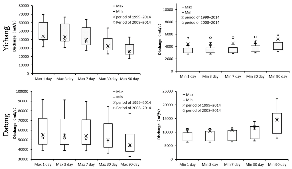 18]. In order to fully understand the impact of TGR on the hydrologic regime of Yichang and Datong stations, the daily flow series during 2008–2014 are also used as extra data to provide a reference for the analysis of recent hydrologic regime changes.