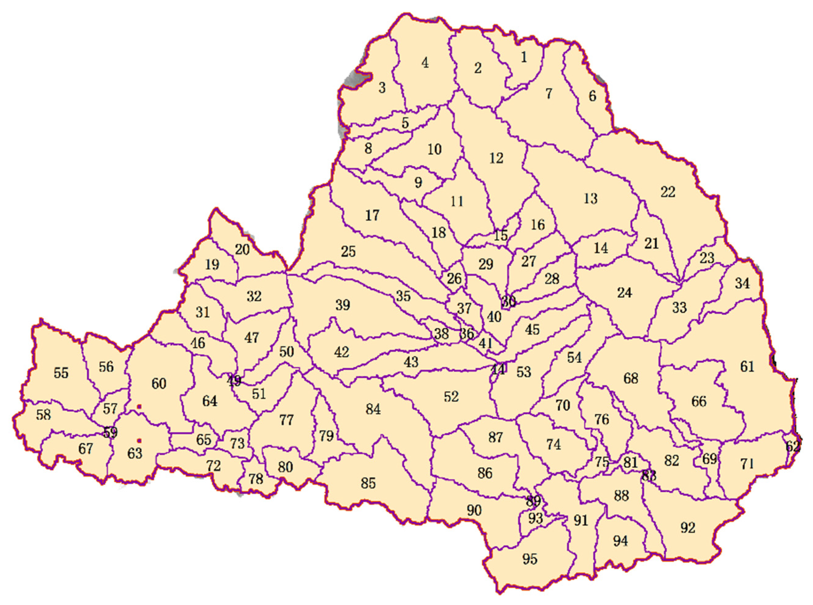 33]. Previous studies have shown that SWAT can reflect the spatial heterogeneity of a watershed’s climatic factors and underlying surface composition. For these reasons, SWAT 2009 was used to simulate runoff processes in the study area.