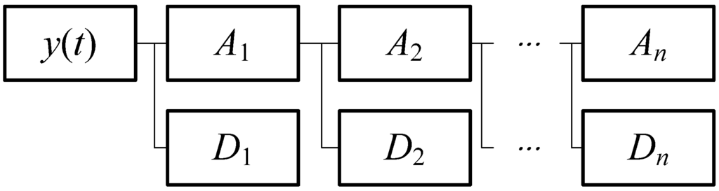 In the above formula, represents the original signal, represent the detail signals from the decomposition of the original signal by the wavelet transform, represents the approximation signals, and represents the order of the wavelet decomposition.