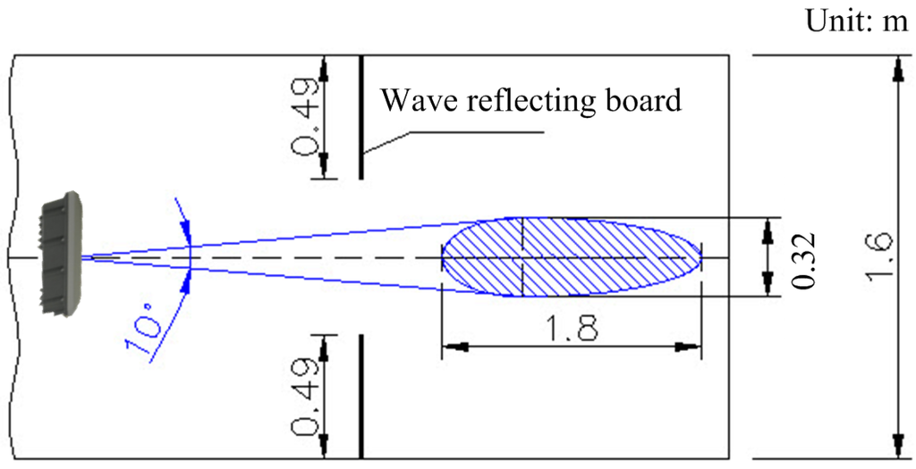 Projection range of the radar waves (tilt angle = 30° and yaw angle = 0°).
