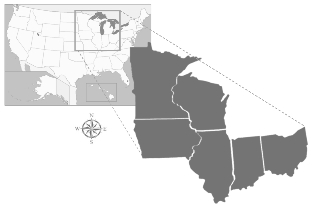 The six states from the North Central Region of the United States that were used in this study.