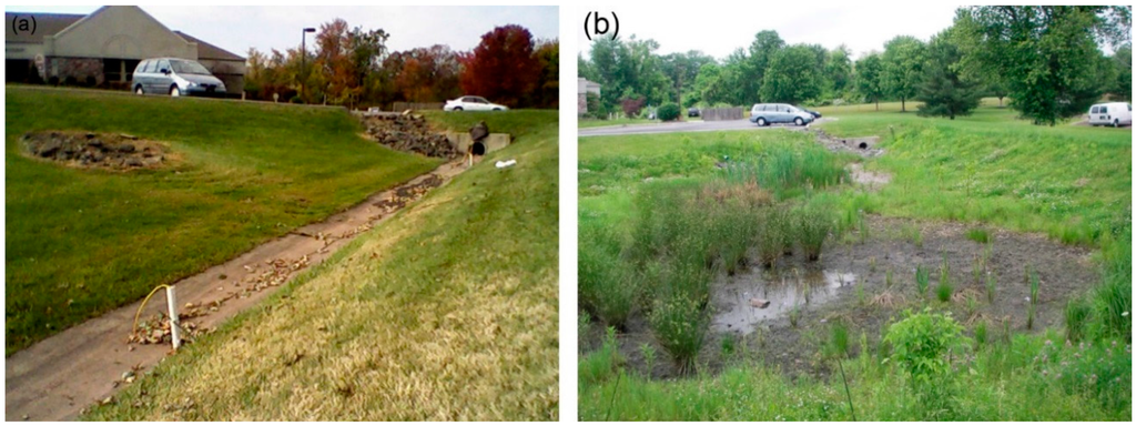 Controlling stormwater runoff is critical to watershed health. Increased infiltration can help to reduce both the volume of water and contaminant loads that threaten streams due to increased impervious surface area []. As urban centers expand or renovate, sustainable design typically depends on including stormwater controls to infiltrate water more efficiently in less space than natural systems [].