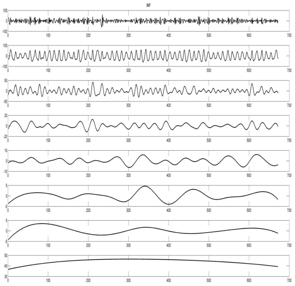 - Decomposition of the original sequence. The original data sequence is decomposed into eight sequences IMF1, IMF2…IMF8 by EEMD.