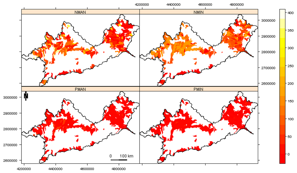 4, or sediments) or other metrics (Equations (1) and (3); or other economic valuation). In these cases, the analysis would be enlarged to a higher number of dimensions (the Pareto set will be a surface instead of one curve).