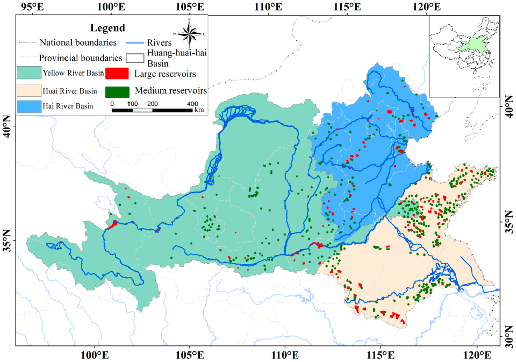 Distribution of large and medium reservoirs in Huang-Huai-Hai River Basin.