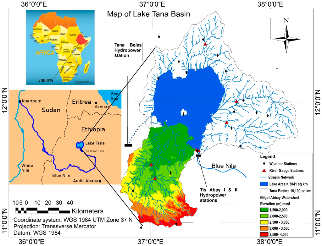 - Belete, M.A. Modeling and Analysis of Lake Tana Sub Basin Water Resources Systems, Ethiopia. Ph.D. Thesis, University of Rostock, Rostock, Germany, 2013. [Google Scholar]