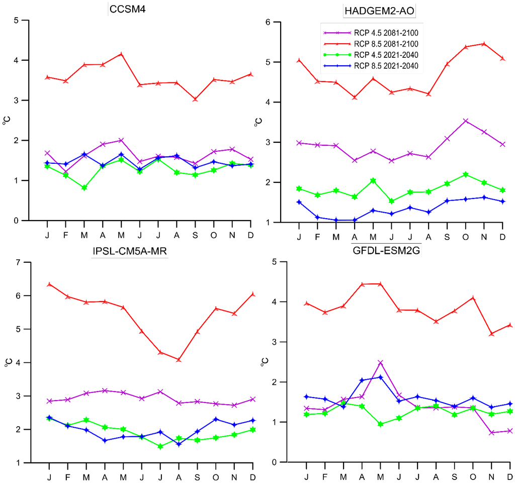 | RCP 8.5 | RCP 4.5 | RCP 8.5 | RCP 4.5 | |