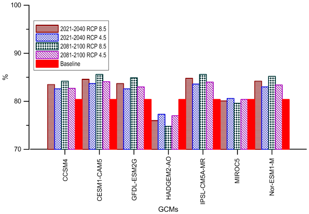 | 2081–2100 | RCP 8.5 | 20% | 15% | 17% | 20% | 15% | 13% | 16% | 0 |