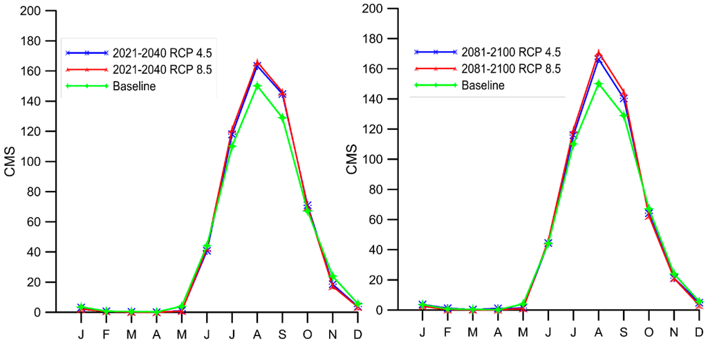 3.5. Impact of Climate Change on Runoff