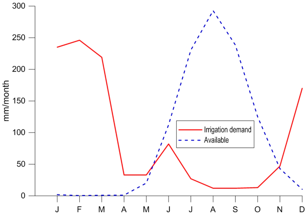 3.6. Possible Impact on Lake Storage and Irrigation Scheme