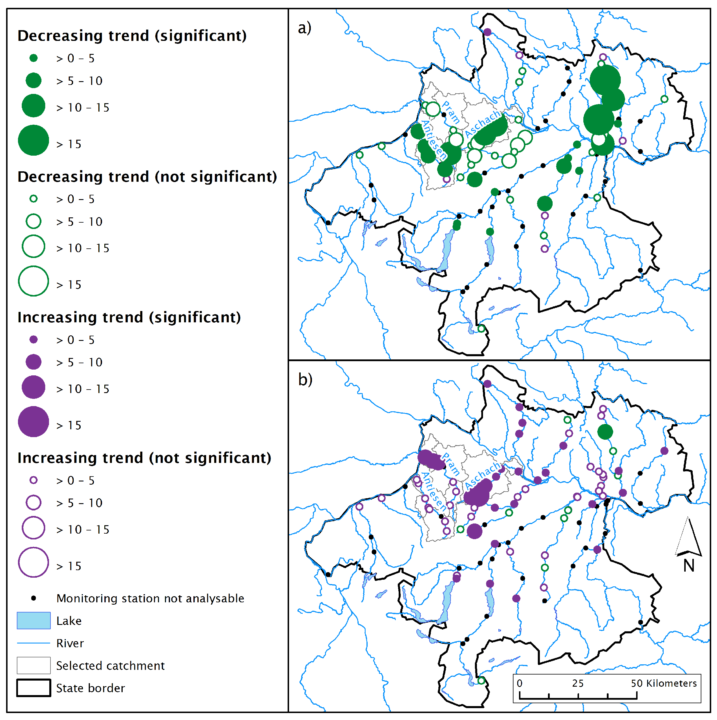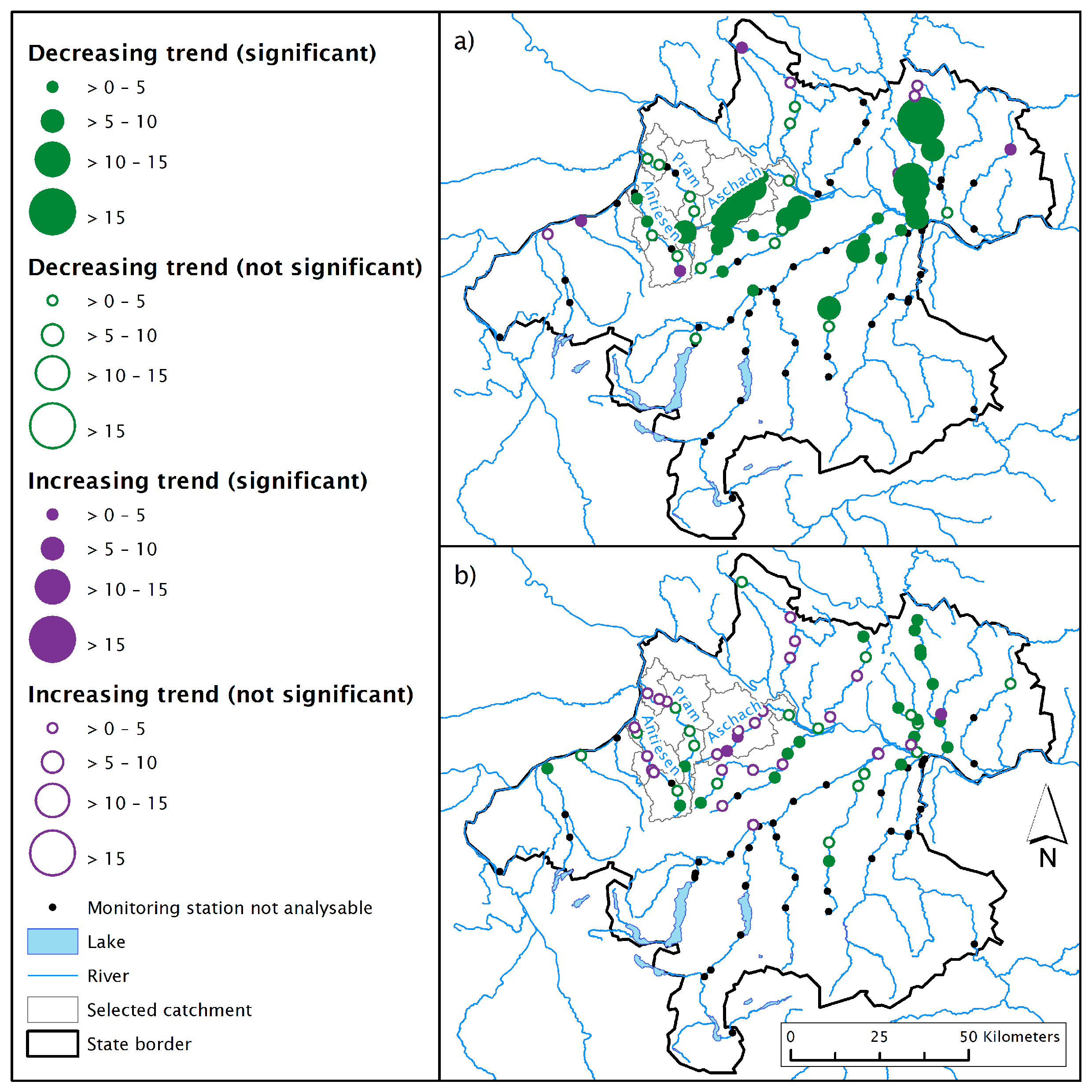 - Hirsch, R.M.; Alexander, R.B.; Smith, R.A. Selection of methods for the detection and estimation of trends in water quality. Water Resour. Res. 1991, 27, 803–813. [Google Scholar] [CrossRef]