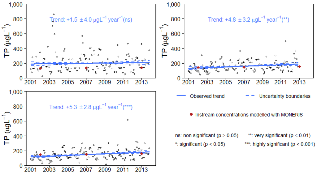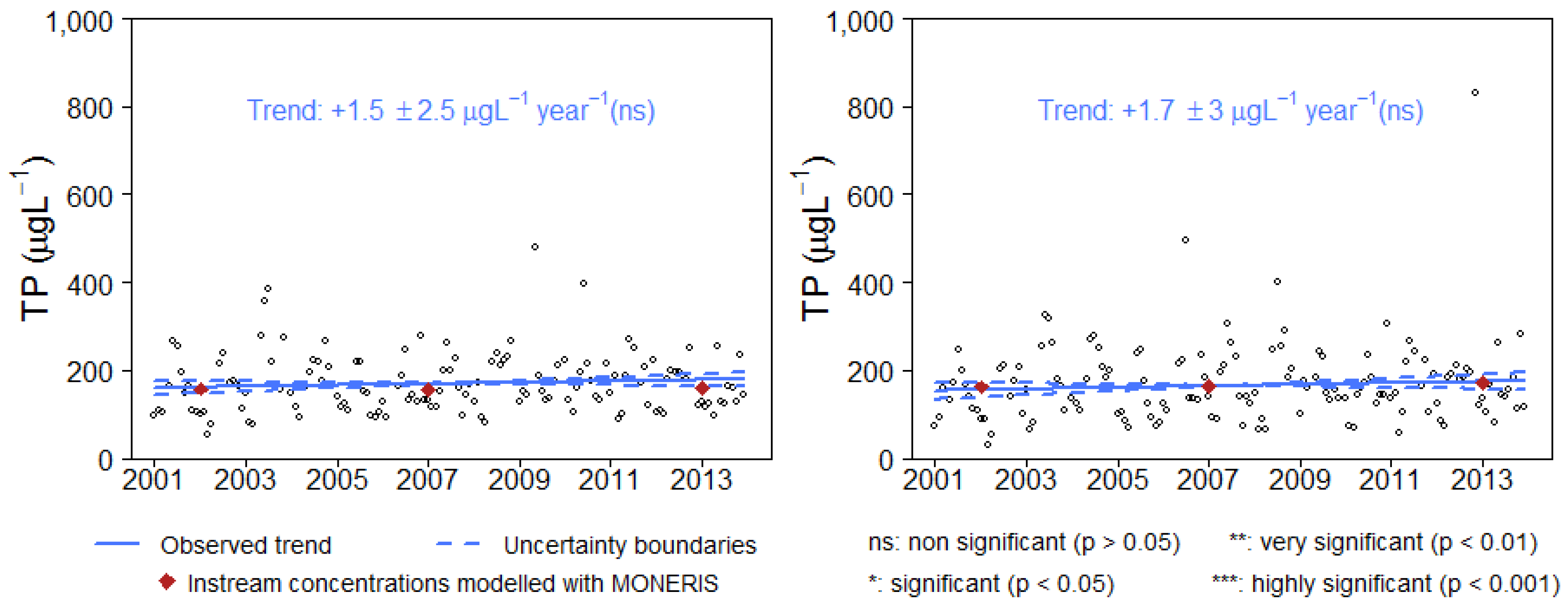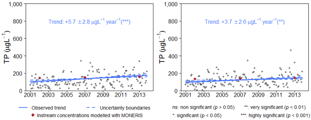 | Temporal Change (±μg TP−1 year−1) | 2001–2013 | |