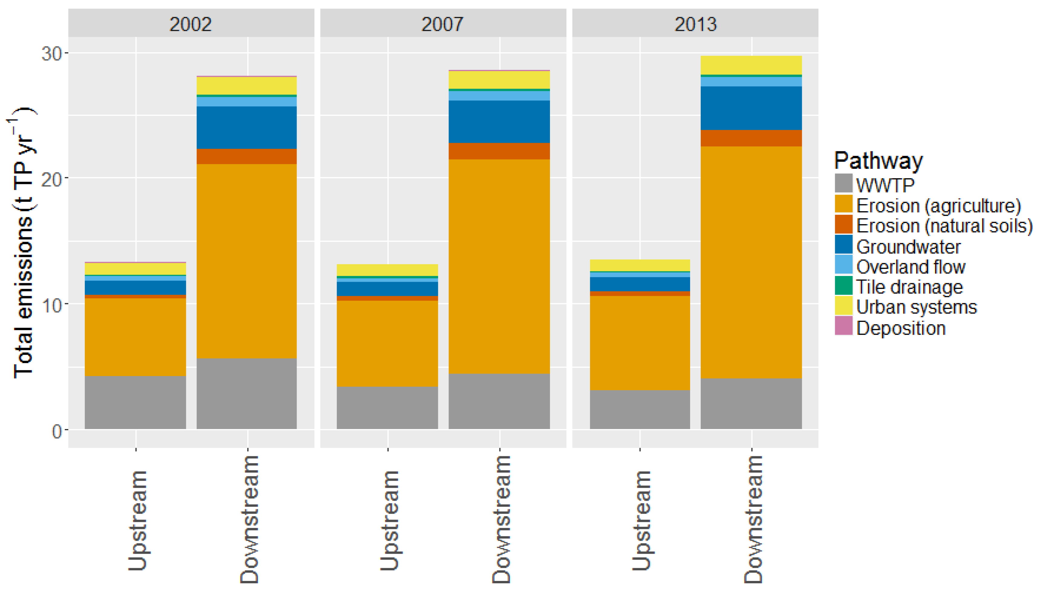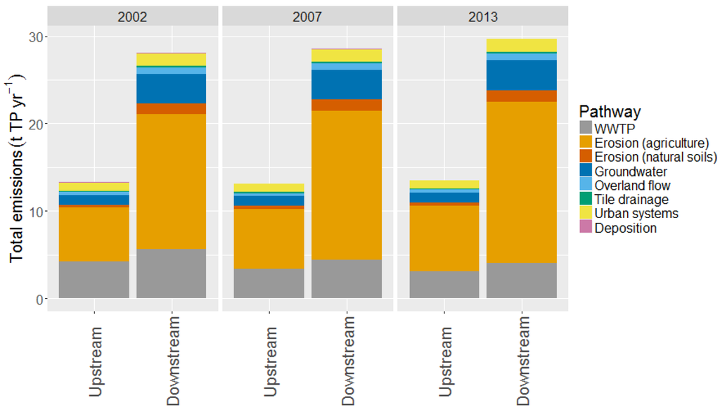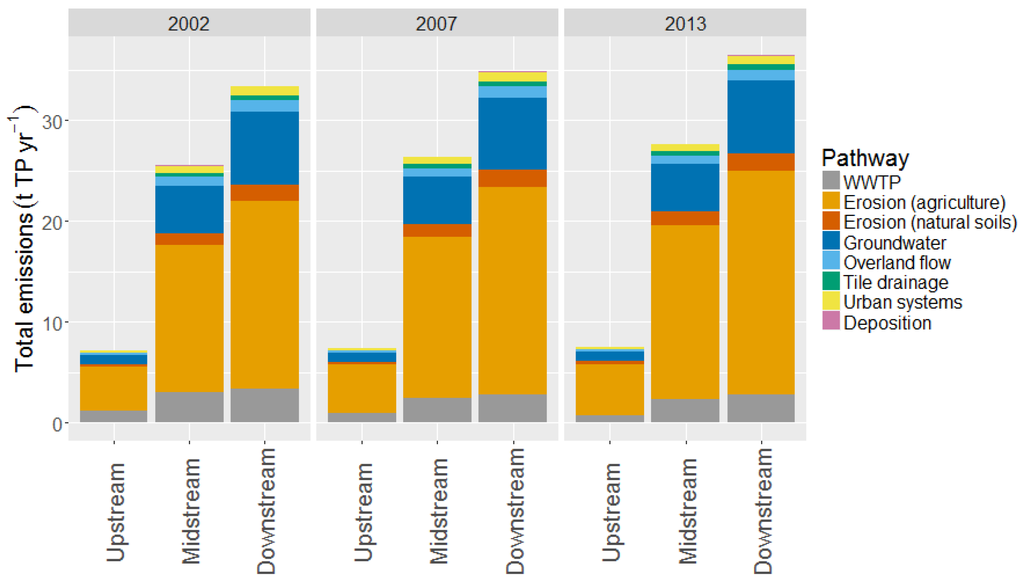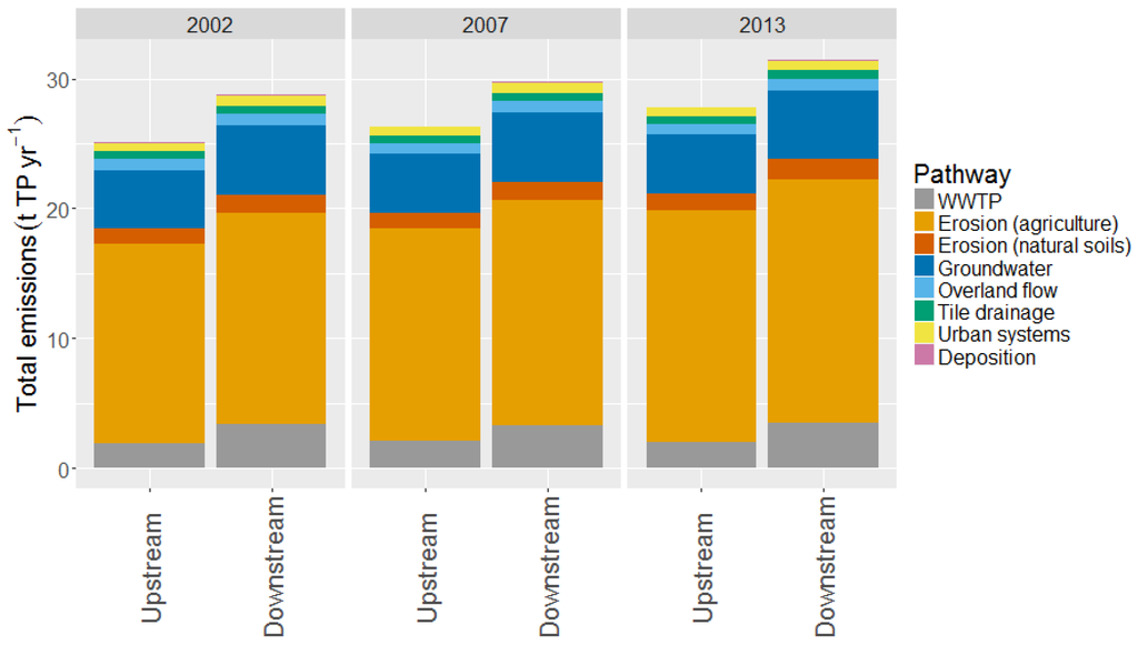 3.3. Identification of the Causes for Changes of TP Concentration in Selected Sub-Catchments
