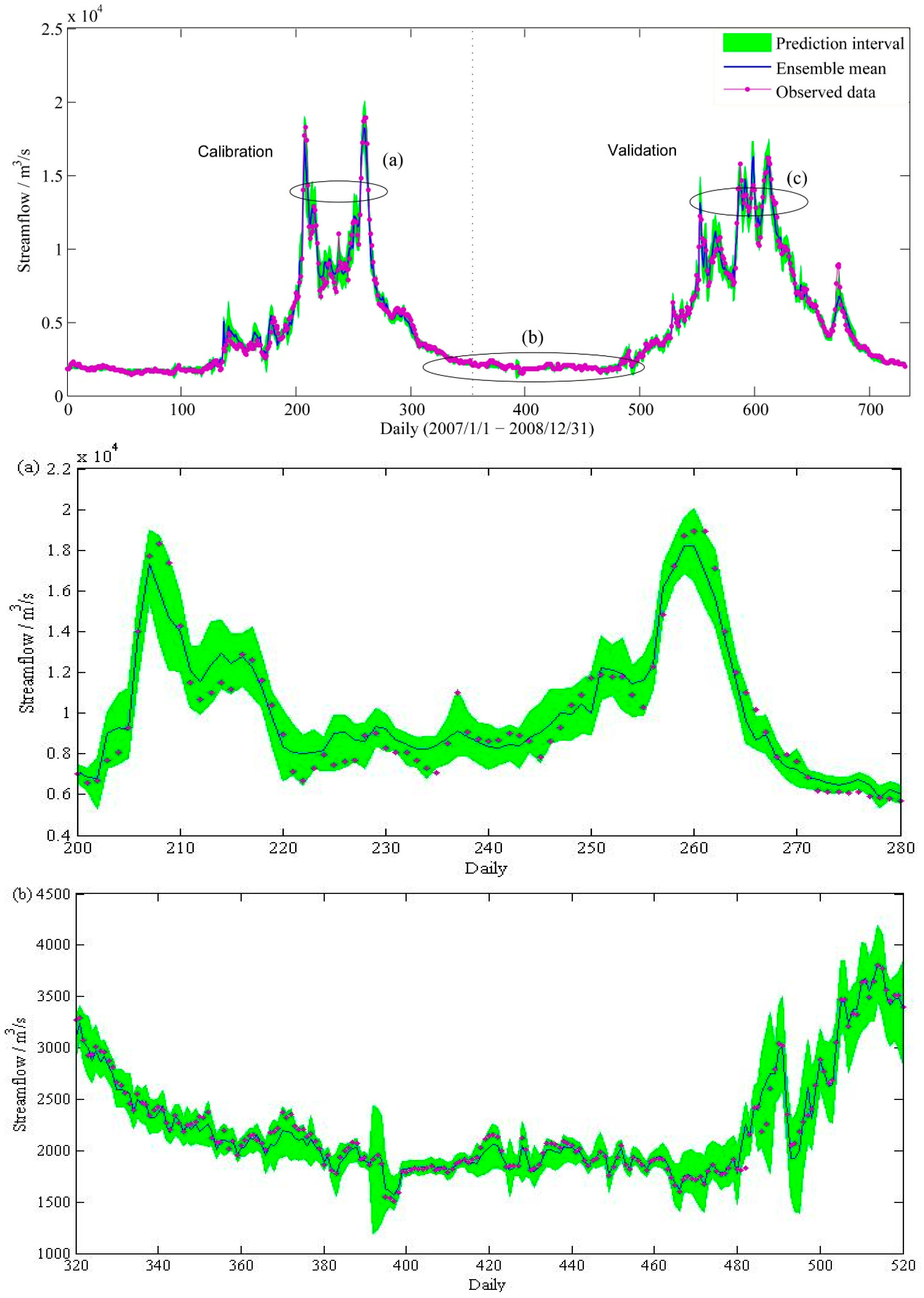 - Ye, L.; Zhou, J.Z.; Zeng, X.F.; Guo, J.; Zhang, X.X. Multi-objective optimization for construction of prediction interval of hydrological models based on ensemble simulations. J. Hydrol. 2014, 519, 925–933. [Google Scholar] [CrossRef]