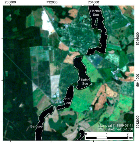 Thus, in this study calcite precipitation and phytoplankton blooms cannot be distinguished clearly. The potential risk of misclassification in the lakes in Feldberg Lake District or Klocksin Lake Chain is very low because the lakes are mostly mesotrophic and considerable algal blooms are most likely in eutrophic lakes with chl-a concentration above 20 μg/L [
