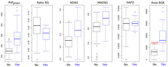 Figure 15). Some heterogeneity within the water bodies is smoothed out by the 30-m resolution of Landsat, but there are also artifacts from the atmospheric correction of Landsat 8 images that cause some variation [