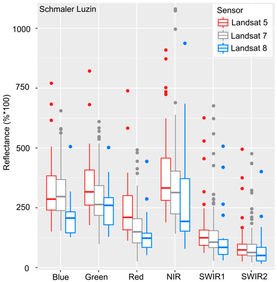 The atmospheric correction is the most complex and error-prone processing step in water remote sensing as atmospheric correction models try to remove a large noise (atmosphere) from the small signal of water. However, in time series analysis atmospheric correction is essential for the comparison of different dates and sensors. In this study, we use the Landsat archive (Landsat 5, 7 and 8) and Sentinel-2 imagery, but the focus is the fast and easy applicability of satellite images for the monitoring of calcite precipitation. Thus, we ordered the satellite images in their highest processing level, including atmospheric correction, or used the state-of-the-art processor (e.g., sen2cor for the atmospheric correction) recommended by the provider of the satellite data. However, the models for the atmospheric correction differ for the different sensors and cause significant variation in the lake spectra (cf.