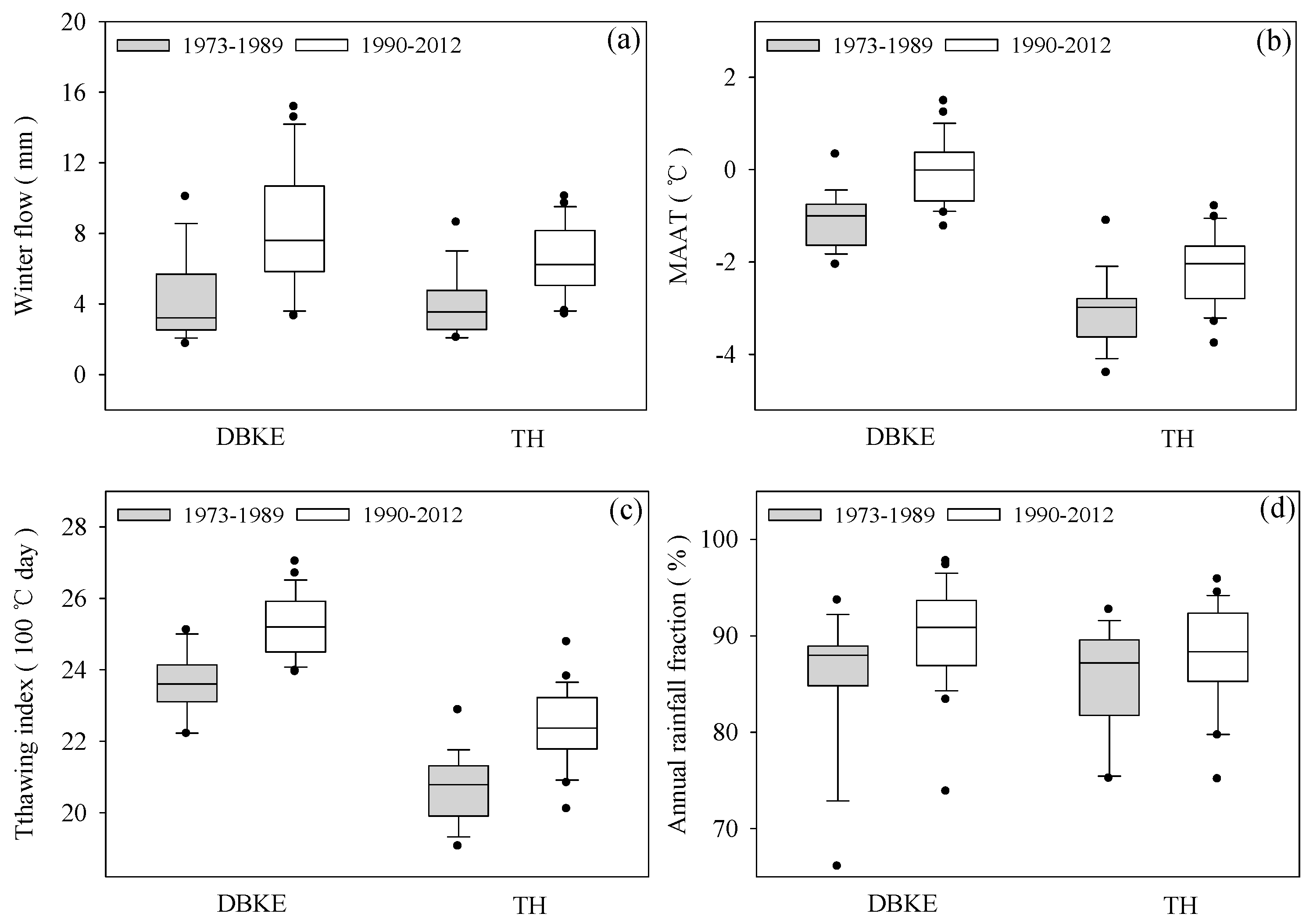 | Watershed | Winter Baseflow | MAAT | Thawing Index | |||||