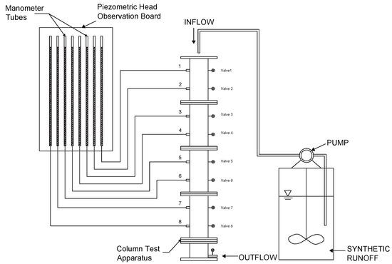- Kandra, H.S.; McCarthy, D.; Fletcher, T.D.; Deletic, A. Assessment of clogging phenomena in granular filter media used for stormwater treatment. J. Hydrol. 2014, 512, 518–527. [Google Scholar] [CrossRef]