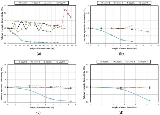 - Hydraulic conductivity reduction and fluctuation of all cases were mainly directed to the formation of clogging layer, and the rearrangement and re-entrainment of filter media.